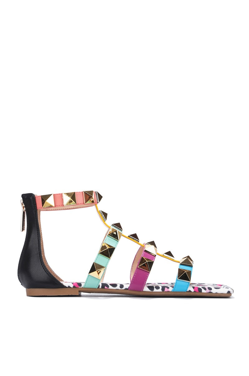 Expertly crafted with a strappy design and luxe gold details, the "Zimza" gladiator sandals are the perfect addition to your summer wardrobe. These sandals run bigger, so be sure to order down one size for the perfect fit. Available in chic black or colorful multi, they're a versatile and stylish choice for any outfit.